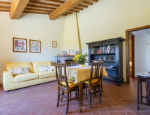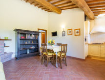 Residence "Cedri Alti", okružen drvećem i poljima. 4 kuće u residenceu. Iznad mjesta Gavignano in Val d'Ambra 5 km od centra mjesta Bucine, 1 km od centra mjesta Ambra, 32.5 km od centra mjesta Arezzo, mirno, povišeno mjesto. Za zajedničko korištenje: parcela 14 ha, vrt 6'000 m2 (ograđen) - travnjak i drveće, livada, voćnjak, bazen (12 x 6 m, 70- 240 cm dubok, sezonska dostupnost: 15.Apr. - 31.Oct. bazen je otvoren u vremenu: 00:01-24:00). Vanjski tuš, kućica uz bazen, stolni tenis, terasa, vrtna garnitura za sjedenje, roštilj. U kući: stolni tenis, stolni nogomet. Parking. Trgovina 1.4 km, supermarket 7 km, željeznička postaja "Bucine" 3 km, pješčana plaža "Castiglione della Pescaia" 125 km, vanjski bazen 1 km. Tenis 1 km, jahanje konja 1 km. U blizini: Siena 40 km, Montepulciano 55 km, Firenze 65 km, Equestrian Center Arezzo 25 km. Dodatna informacija: prikladno za obitelji.Interior