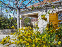 3 -sobna kuća 100 m2. Lijepo uređena: dnevni boravak/blagovaona 25 m2 s 1 kaučem za 2 osobe, otvorenim kaminom, TV-om sa sat. prijemnikom i klima uređajem. Izlaz na terasu. 2 sobe, svaka soba s 1 bračnim krevetom (180 cm, dužina 200 cm), klima uređajem. Otvorena kuhinja (4 ploče za kuhanje, pećnica, zamrzivač). Tuš/WC. Grijanje na drva (uz doplatu), grijanje toplim zrakom (uz doplatu). Terasa 20 m2 (natkrita). Garnitura za sjedenje. Na raspolaganju: Internet (wireless LAN [WLAN], besplatan).- postrojenja