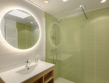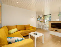 "Comfort Cottage", 3 -sobna kuća u nizu 64 m2. Komforno uređena: predsoblje s odv. WC-om. Dnevni boravak/blagovaona s otvorenim kaminom, stolom za blagovanje i plosnatim TV ekranom. Izlaz na terasu. 2 bračne sobe, svaka soba s 2 kreveta. Otvorena kuhinja (4 ploče za kuhanje, perilica za suđe, toster, kuhalo za vodu, el. aparat za kavu, kombinirana mikrovalna pećnica). Tuš. Terasa. Garnitura za sjedenje, ostava. Na raspolaganju: visoka dječja stolica, dječji krevetić. Internet (wireless LAN [WLAN], besplatan). Dodatna informacija: protupožarni alarm.- postrojenja