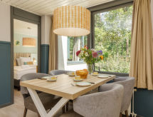 Heijen 30 km od mjesta Nijmegen: Veliko turističko naselje "Center Parcs Het Heijderbos". Direktno na jezeru, u zelenom. Za zajedničko korištenje: unutarnji bazen (sezonska dostupnost: 01.Jan. - 31.Dec.). Tuš/WC uz bazen, bazen za djecu, tobogan, hidromasažni bazen, tenis (uz doplatu), dječje igralište (tobogan, ljuljačka, pješčanik). Mali zoološki vrt, unutrašnje dvorište sa zelenilom. U kompleksu: recepcija, restoran, bar, wireless LAN [WLAN], sauna, masaža (uz doplatu). Solarij, wellness kuglana (uz doplatu). Biljar, igraonica za djecu, trgovina, najam bicikli. Na raspolaganju: dječje bicikle, čamac (uz doplatu). Dostava kruha. Centralna parkirna mjesta. Supermarket 50 m. Minigolf 50 m. U blizini: Goch DE 14 km, Nationaalpark Maasduinen 15 km, Kleve DE 18 km, Canadian War Cemetery Groesbeek 20 km, Zoo Parc Overloon 20 km. Dodatna informacija: preporučljiv vlastiti prijevoz. Animacija. Vlasnik ne prihvaća grupe mladih. Ribolov dozvoljen (dozvola neophodna). Moguć iskrcaj i ukrcaj prtljage uz kuću. Fotografija prikazuje samo tipičan primjer kuće. Mogućnost rezerviranja dodatnih smještajnih jedinica.Interior