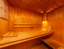"VIP Cottage", 3 -sobna kuća u nizu 75 m2. Komforno uređena: predsoblje s odv. WC-om. Dnevni boravak/blagovaona s otvorenim kaminom, stolom za blagovanje i plosnatim TV ekranom. Izlaz na terasu. 1 bračna soba s 1 bračnim krevetom. 1 bračna soba s 2 kreveta. Otvorena kuhinja (4 ploče za kuhanje, perilica za suđe, toster, kuhalo za vodu, el. aparat za kavu, kombinirana mikrovalna pećnica). Kada/tuš, duplim umivaonikom, Sauna. Terasa. Garnitura za sjedenje, ostava. Na raspolaganju: sef, visoka dječja stolica, dječji krevetić. Internet (wireless LAN [WLAN], besplatan). Dodatna informacija: protupožarni alarm.- Aktivnosti u blizini