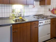 "Bel Air", 3 -sobni apartman 75 m2 na 2 etaže. Objekt pogodan za 2 odraslih + 2 djece. Svrsishodno i udobno uređen: dnevni boravak/blagovaona s TV-om. Izlaz na balkon. Kuhinjska niša (3 ploče za kuhanje, pećnica, toster, kuhalo za vodu, mikrovalna pećnica, el. aparat za kavu, raclette roštilj, set za fondue (sir)). Odv. WC. Gornji kat: 1 soba s 2 kreveta (90 cm, dužina 200 cm). 1 dječja soba s 1 x 2 kreveta na kat (90 cm, dužina 200 cm). Kada/WC. Tapison. Balkon 5 m2. Balkonski namještaj, ležaljke (2). Prekrasan pogled na planine, skijašku stazu, krajolik i mjesto. Na raspolaganju: dječji krevetić do 2 godine. Internet (wireless LAN [WLAN]). Garaža br. 6. Dodatna informacija: apartman za nepušače. Najviše 1 kućni ljubimac / pas dozvoljen.- postrojenja