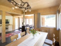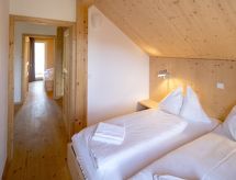 "Chalet Bergfalter 23", 5 -sobni chalet 125 m2 na 2 etaže. Svijetlo, komforno i s puno drva uređen: dnevni boravak/blagovaona s stolom za blagovanje i TV-om sa sat. prijemnikom (plosnatim TV ekranom). 3 bračne sobe. 1 soba s 1 x 2 kreveta na kat. (pećnica, perilica za suđe, 4 staklokeramičke ploče za kuhanje, mikrovalna pećnica, el. aparat za kavu). 3 x tuš/WC, hidromasažnim tušem, hidromasažnom kadom. Terasa. Garnitura za sjedenje. Lijep panoramski pogled. Na raspolaganju: Internet (wireless LAN [WLAN], besplatan). Dodatna informacija: apartman za nepušače. Protupožarni alarm. Rezervira se tipski objekt (kuća, apartman) i moguća su manja odstupanja.- postrojenja
