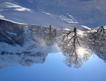 3 -sobni apartman 73 m2, u povišenom prizemlju, prema jugu. Svijetlo, udobno uređen: dnevno-spavaća soba s panoramskim prozorom s 1 kaučem za 2 osobe (2 x 90 cm, dužina 200 cm), međunarodnim TV kanalima i plosnatim TV ekranom. Izlaz na balkon, na lođu, na mjesto za sjedenje u vrtu, prema jugu i prema zapadu. 2 sobe, svaka soba s 2 kreveta (90 cm, dužina 200 cm). Kuhinja (pećnica, perilica za suđe, 4 staklokeramičke ploče za kuhanje, mikrovalna pećnica, el. aparat za kavu, raclette roštilj) s otvorom prema blagovaoni, bojlerom (20 litara). Kada, odv. WC. El. grijanje, bojlerom (300 litara). Parketni pod. Vrtna terasa, prema jugu i prema zapadu. Balkonski namještaj. Prekrasan panoramski pogled na planine. Na raspolaganju: sušilo za kosu. Internet (wireless LAN [WLAN], besplatan). Garaža, visina 210 cm, širina 220 cm. Dodatna informacija: apartman za nepušače. Vatrogasni aparat.- postrojenja