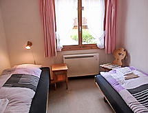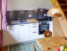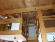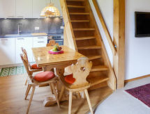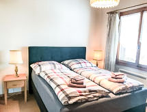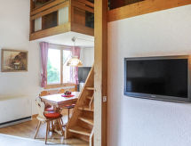 3 -sobni apartman 60 m2 na 1. katu, prema jugu. Udobno uređen: dnevni boravak/blagovaona s otvorenim kaminom, digitalnim TV i radiom. Izlaz na balkon, prema jugu. 1 soba s 2 kreveta (80 cm, dužina 200 cm). 1 soba s 1 krevetom (160 cm, dužina 200 cm). Otvorena kuhinja (pećnica, perilica za suđe, 4 Indukcione ploče, el. aparat za kavu, Doze za mašinu za kavu (Nespresso) uz doplatu, raclette roštilj, set za fondue (chinoise, sir)). Tuš/WC. Gornji kat: galerija. Balkon 8 m2, prema jugu i prema zapadu. Balkonski namještaj. Prekrasan pogled na planine. Na raspolaganju: sušilo za kosu, drvo (uz doplatu). Internet (wireless LAN [WLAN], besplatan). Parking na 50 m. Dodatna informacija: apartman za nepušače. Vatrogasni aparat.- postrojenja