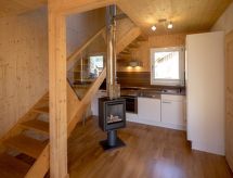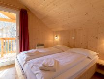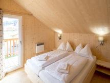"Chalet ECO 70/4P", 3 -sobni chalet 70 m2 na 2 etaže. Svijetlo, komforno i s puno drva uređen: predsoblje. Dnevni boravak/blagovaona s stolom za blagovanje i TV-om sa sat. prijemnikom (plosnatim TV ekranom). 2 bračne sobe. Otvorena kuhinja (pećnica, perilica za suđe, 4 staklokeramičke ploče za kuhanje, mikrovalna pećnica, el. aparat za kavu). Tuš/WC, hidromasažnim tušem, Sauna. Balkon, terasa. Vrlo lijep pogled na planine, skijašku stazu i krajolik. Na raspolaganju: Internet (wireless LAN [WLAN], besplatan). Dodatna informacija: kuća za nepušače. Protupožarni alarm. Rezervira se tipski objekt (kuća, apartman) i moguća su manja odstupanja. Kuće su individualno namještene. Stoga se oprema sauna može razlikovati između infracrvene saune i finske saune.- postrojenja