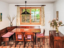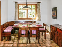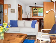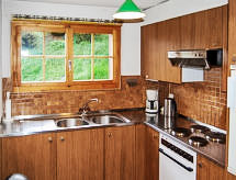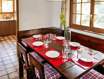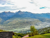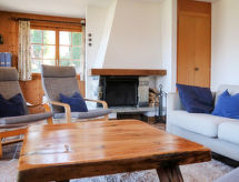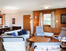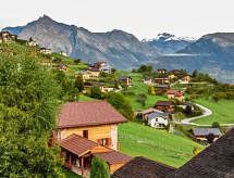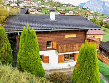 "Chalet Enfin", 4 -sobni chalet 100 m2 na 2 etaže. Dnevni boravak/blagovaona s otvorenim kaminom, TV-om sa sat. prijemnikom, radiom i DVD-om. Izlaz u vrt. Kuhinja (4 ploče za kuhanje, pećnica, mikrovalna pećnica, set za fondue (sir)). Odv. WC. Gornji kat: 2 sobe, svaka soba s 2 kreveta (90 cm, dužina 190 cm). Izlaz na balkon. 1 soba s 2 kreveta (90 cm, dužina 190 cm). Kada/WC. Balkon, prema sjeveru i prema istoku, 2 terase, prema istoku i prema zapadu. Garnitura za sjedenje. Vrlo lijep pogled na planine i dolinu. Na raspolaganju: perilica za rublje, sušilica. Internet (wireless LAN [WLAN], besplatan). Parking. Dodatna informacija: apartman za nepušače.- postrojenja