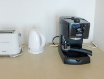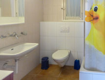 2 -sobni apartman 35 m2, u prizemlju, prema jugu. Svrsishodno i udobno uređen: dnevno-spavaća soba s 1 kaučem za 1 osobu (140 cm, dužina 200 cm), švedskom peći, kabelskom TV i el. grijanjem. Izlaz na mjesto za sjedenje u vrtu, prema jugu. 1 soba s 1 bračnim krevetom (2 x 90 cm, dužina 200 cm). Otvorena kuhinja (pećnica, 4 staklokeramičke ploče za kuhanje, el. aparat za kavu, raclette roštilj, set za fondue (sir)). Tuš/WC. El. grijanje. Vrtna terasa, prema jugu i prema zapadu. Garnitura za sjedenje, ostava. Prekrasan pogled na planine. Na raspolaganju: dječji krevetić do 1 godine. Internet (wireless LAN [WLAN], besplatan). Parking (natkrit) uz kuću. Dodatna informacija: apartman za nepušače. Vlastiti ulaz, vatrogasni aparat.- postrojenja
