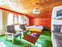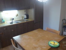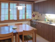 2 -sobni apartman 60 m2 na 1. katu, prema jugozapadu. Svrsishodno i udobno uređen: dnevno-spavaća soba 30 m2 s 1 bračnim krevetom (2 x 90 cm, dužina 200 cm), TV-om sa sat. prijemnikom (plosnatim TV ekranom), radiom. Izlaz na balkon. 1 soba s 1 bračnim krevetom (2 x 90 cm, dužina 200 cm). Kuhinja/dn. boravak (3 ploče za kuhanje, pećnica, el. aparat za kavu). Tuš/WC. Balkon 7 m2, prema jugu i prema zapadu. Balkonski namještaj. Lijep pogled na planine. Na raspolaganju: Internet (wireless LAN [WLAN], besplatan). Parking uz kuću. Dodatna informacija: apartman za nepušače. Najviše 1 kućni ljubimac / pas dozvoljen. Vatrogasni aparat.- postrojenja