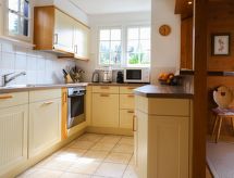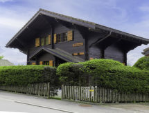"Chalet Merymont", 4 -sobni chalet 110 m2 na 3 etaže, prema jugu. Komforno i udobno uređen: dnevni boravak/blagovaona s bibliotekom, TV-om i međunarodnim TV kanalima (plosnatim TV ekranom), DVD-om. Izlaz na balkon, prema jugu. Otvorena kuhinja (pećnica, perilica za suđe, 4 staklokeramičke ploče za kuhanje, toster, kuhalo za vodu, mikrovalna pećnica, zamrzivač, el. aparat za kavu, Doze za mašinu za kavu (Nespresso) uz doplatu, raclette roštilj, set za fondue (sir)). Donji kat: 1 soba s 2 kreveta (90 cm, dužina 200 cm), 1 kaučem za 1 osobu. Tuš/WC. Gornji kat: 2 sobe, svaka soba s 1 franc. krevetom (180 cm, dužina 200 cm). Odv. WC, kada/tuš/WC. Veliki balkon, prema jugu, veliki vrt 600 m2, prema jugu. Garnitura za sjedenje, balkonski namještaj, vrtni roštilj (prijenosni). Vrlo lijep panoramski pogled na planine i vrt. Na raspolaganju: perilica za rublje, sušilica, telefon, glačalo, sušilo za kosu. Internet (wireless LAN [WLAN], besplatan). Parking, garaža na 50 m. Dodatna informacija: kuća za nepušače. Protupožarni alarm, vatrogasni aparat.- postrojenja