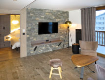 Lijepi, komforni residence "Chalet Skadi". 26 apartmana u residenceu. Na rubu mjesta, 600 m od centra mjesta Val d'Isère, 15 km od centra mjesta Tignes, sunčano mjesto, direktno na skijalištu. Za zajedničko korištenje: unutarnji bazen grijani (10 x 5 m, 160 cm dubok) s unutarnjim stepenicama. Tuš/WC uz bazen. U kompleksu: recepcija, prostorija za druženje sauna, masaža (uz doplatu). Parna kupelj, hidromasažni bazen, dizalo, spremište za skije, grijač za skijašku obuću. Dostava kruha i doručak može (uz doplatu). Na raspolaganju spremište. Zajednička garaža (uz doplatu). Parking/garaža samo za mala - srednja vozila. Dimenzija: visina 220 cm. Trgovina, trgovina živežnim namirnicama 50 m, restoran, bar 600 m. Pješačke staze od kuće, skilift, skijaške staze 500 m, najam skijaške opreme, postaja ski busa 50 m. Poznata skijališta u blizini: Tignes – Val d'Isère (Espace Killy). Dodatna informacija: oprema za bebe na upit (uklj.). Fotografija prikazuje samo tipičan primjer kuće. Objekti se mogu razlikovati po stambenom prostoru, podjeli prostorija, opremi i namještaju.Interior