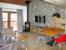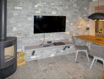 Lijepi, komforni residence "Chalet Skadi". 26 apartmana u residenceu. Na rubu mjesta, 600 m od centra mjesta Val d'Isère, 15 km od centra mjesta Tignes, sunčano mjesto, direktno na skijalištu. Za zajedničko korištenje: unutarnji bazen grijani (10 x 5 m, 160 cm dubok) s unutarnjim stepenicama. Tuš/WC uz bazen. U kompleksu: recepcija, prostorija za druženje sauna, masaža (uz doplatu). Parna kupelj, hidromasažni bazen, dizalo, spremište za skije, grijač za skijašku obuću. Dostava kruha i doručak može (uz doplatu). Na raspolaganju spremište. Zajednička garaža (uz doplatu). Parking/garaža samo za mala - srednja vozila. Dimenzija: visina 220 cm. Trgovina, trgovina živežnim namirnicama 50 m, restoran, bar 600 m. Pješačke staze od kuće, skilift, skijaške staze 500 m, najam skijaške opreme, postaja ski busa 50 m. Poznata skijališta u blizini: Tignes – Val d'Isère (Espace Killy). Dodatna informacija: oprema za bebe na upit (uklj.). Fotografija prikazuje samo tipičan primjer kuće. Objekti se mogu razlikovati po stambenom prostoru, podjeli prostorija, opremi i namještaju.Interior