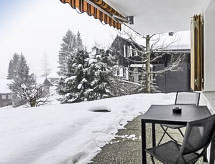 1 -sobni apartman 25 m2, u prizemlju, prema jugu. Svijetlo, udobno uređen: dnevno-spavaća soba s 2 kreveta (90 cm, dužina 200 cm), kabelskom TV (plosnatim TV ekranom). Izlaz na mjesto za sjedenje u vrtu, prema jugu. Otvorena kuhinja (pećnica, 4 staklokeramičke ploče za kuhanje, el. aparat za kavu, Doze za mašinu za kavu (Nespresso) uz doplatu, raclette roštilj, set za fondue (sir)). Izlaz na mjesto za sjedenje u vrtu. Tuš/WC. Parketni pod. Velika vrtna terasa, prema jugu. Garnitura za sjedenje, ležaljke (2). Prekrasan pogled na planine. Na raspolaganju: sušilo za kosu. Internet (wireless LAN [WLAN], besplatan). Parking uz kuću. Dodatna informacija: apartman za nepušače. Vatrogasni aparat.- postrojenja