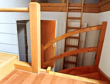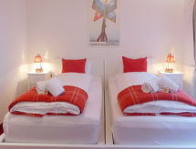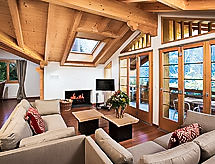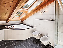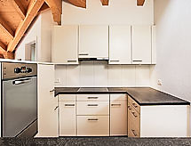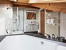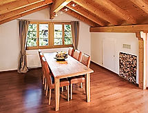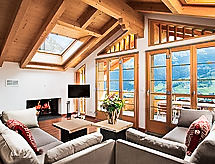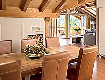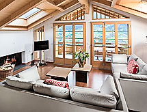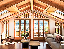 4 -sobni apartman 130 m2, u potkrovlju, prema jugu. Djelomično spušten strop, lijepo i ukusno uređen: otvoreni dnevni boravak/blagovaona s kosim stropom s otvorenim kaminom i kabelskom TV (plosnatim TV ekranom), radiom. Izlaz na balkon, prema jugu. 1 soba s 1 bračnim krevetom (2 x 90 cm, dužina 200 cm). 1 soba s 2 kreveta (90 cm, dužina 200 cm). 1 mala soba s 1 krevetom (90 cm, dužina 200 cm). Otvorena kuhinja (pećnica, perilica za suđe, 4 staklokeramičke ploče za kuhanje, el. aparat za kavu, Doze za mašinu za kavu (Nespresso) uz doplatu, raclette roštilj, set za fondue (sir)). Kada/WC, tuš/WC. Podno grijanje. Veliki balkon, prema jugu. Balkonski namještaj. Prekrasan pogled na planine i dolinu. Na raspolaganju: sušilo za kosu. Internet (wireless LAN [WLAN], besplatan). Parking br. 2 (natkrit, 1 automobil). Dodatna informacija: apartman za nepušače. Vlastiti ulaz, vatrogasni aparat.- Značajke smještaja