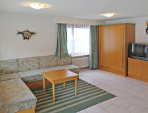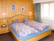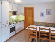 6 -sobni apartman 120 m2 na 1. katu. Udobno uređen: dnevni boravak/blagovaona s 2 kauča za 1 osobu, stolom za blagovanje i TV-om sa sat. prijemnikom (plosnatim TV ekranom), radiom i DVD-om. Izlaz na balkon. Dnevni boravak/blagovaona s 2 ležaja i TV-om sa sat. prijemnikom (plosnatim TV ekranom), radiom i DVD-om. Izlaz na terasu. 3 bračne sobe, svaka soba s umivaonikom. 1 bračna soba. Otvorena kuhinja (6 pećnica, mikrovalna pećnica, el. aparat za kavu, set za fondue (sir)). 2 x kada ili tuš/WC. Grijanje na naftu. 2 balkona, prema jugu. Balkonski namještaj, ležaljke (4). Panoramski pogled na planine i mjesto. Na raspolaganju: Internet (wireless LAN [WLAN], besplatan). Dodatna informacija: apartman za nepušače.- Značajke smještaja
