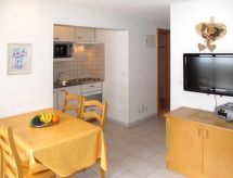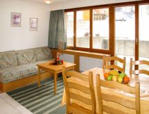 6 -sobni apartman 96 m2, u prizemlju. Udobno uređen: dnevni boravak/blagovaona s 1 kaučem za 1 osobu, stolom za blagovanje i TV-om sa sat. prijemnikom (plosnatim TV ekranom), radiom i DVD-om. Izlaz na terasu. Dnevni boravak/blagovaona s 1 kaučem za 1 osobu i TV-om sa sat. prijemnikom (plosnatim TV ekranom), radiom i DVD-om. Izlaz na terasu. 2 bračne sobe, svaka soba s tušem/WC-om. 2 bračne sobe. Otvorena kuhinja (6 pećnica, mikrovalna pećnica, el. aparat za kavu, set za fondue (sir)). 2 x tuš/WC. Grijanje na naftu. 2 terase, prema jugu. Garnitura za sjedenje, ležaljke (2). Lijep pogled na planine i mjesto. Na raspolaganju: Internet (wireless LAN [WLAN], besplatan). Dodatna informacija: apartman za nepušače.- postrojenja