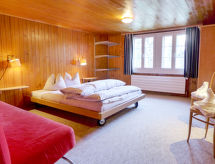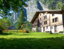 Innertkirchen 5 km od mjesta Meiringen: Veliki, ugodni chalet "Chalet Wychel", prikladan za djecu na 4 kata, nadograđen s jedne strane, okružen drvećem i livadama. Na rubu mjesta, mirno, sunčano mjesto, u zelenom. Za samostalno korištenje: prirodno ostavljena parcela - bilje i drveće, livada. Mjesto za sjedenje, vrtna garnitura za sjedenje, roštilj, ognjište, dječje igralište. U kući: spremište za bicikle, spremište za skije, centralno grijanje, perilica za rublje, sušilica. Uski prilaz autom do parceli. Parking (za 3 automobila) na 100 m na parceli. Trgovina 1 km, supermarket 1 km, restoran 700 m, željeznička postaja "Innertkirchen" 1 km, vanjski bazen 4.5 km, natkriveni bazen 4.5 km. Tenis 4.5 km, pješačke staze od kuće, biciklistička staza 1 m, kabinska žičara 5 km, skijaške žičare 5 km, škola skijanja 5 km, staza za skijaško trčanje 14 km. U blizini: Aareschlucht, Reichenbach Wasserfall, Grimselwelt. Poznata skijališta u blizini: Meiringen-Hasliberg. Poznata jezera u blizini: Brienzersee. Pješačke staze: Rosenlaui, Urbachtal. Dodatna informacija: preporučljiv vlastiti prijevoz. Grupe mladih samo na upit. Moguć iskrcaj i ukrcaj prtljage uz kuću. Susjedstvo izrazito osjetljivo na buku. Očekuje se mir i pristojno ponašanje.Interior