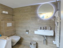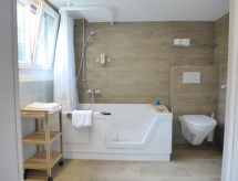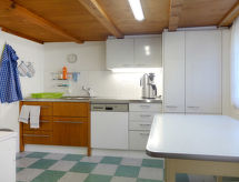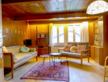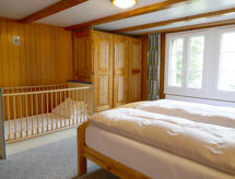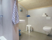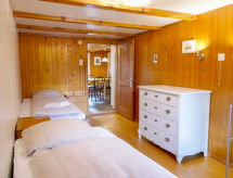 8 -sobna polovica dvojne kuće 200 m2 na 4 etaže. Svrsishodno i udobno uređena: visina stropa 190 - 200 cm, niska vrata visine 180 cm. Donji kat: predsoblje. Kada/tuš/WC. Gornji kat: dnevni boravak s stolom za blagovanje, plosnatim TV ekranom, radiom i DVD-om. Prolazna soba s stolom za blagovanje. Izlaz na mjesto za sjedenje u vrtu. 1 soba s 1 franc. krevetom (160 cm, dužina 190 cm). 1 soba s 2 kreveta (90 cm, dužina 190 cm). Velika kuhinja (3 ploče za kuhanje, pećnica, perilica za suđe, toster, kuhalo za vodu, zamrzivač, el. aparat za kavu, raclette roštilj, set za fondue (sir)). Odv. WC. 2. Gornji kat: 1 velika soba s 1 franc. krevetom (160 cm, dužina 190 cm). 1 soba s 2 kreveta (90 cm, dužina 190 cm). Velika kuhinja/dn. boravak 20 m2 (pećnica, perilica za suđe, 4 staklokeramičke ploče za kuhanje, el. aparat za kavu) s stolom za blagovanje. Tuš/WC. Potkrovlje (strme stepenice) 2 sobe, svaka soba s 2 kreveta (90 cm, dužina 190 cm). Drveni pod, tapison. Vrlo lijep pogled na planine i krajolik. Na raspolaganju: glačalo, visoka dječja stolica, dječji krevetić do 3 godine (uz doplatu), sušilo za kosu. Internet (wireless LAN [WLAN], besplatan). Dodatna informacija: prikladno za obitelji. Apartman za nepušače. Protupožarni alarm, vatrogasni aparat. U slučaju boravka manjeg broja gostiju od maksimalnog kapaciteta objekta, neće biti na raspolaganju sve spavaće sobe.- postrojenja