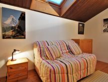 2 -sobni apartman na 2 nivoa 48 m2 na 3. katu. Komforno uređen: veliki dnevni boravak/blagovaona. Izlaz na balkon. 1 soba s 1 franc. krevetom (140 cm, dužina 190 cm). Kuhinja (perilica za suđe, 4 staklokeramičke ploče za kuhanje, toster, kuhalo za vodu, el. aparat za kavu, raclette roštilj, kombinirana mikrovalna pećnica). Kada, odv. WC. El. grijanje. Gornji kat: (strme stepenice) galerija s krovnim prozorom s 1 kaučem za 2 osobe (130 cm, dužina 190 cm). Balkon 9 m2, prema jugu. Vrlo lijep pogled na planine. Na raspolaganju: Internet (wireless LAN [WLAN], uz doplatu). Garaža br. 7 au sous-sol, visina 190 cm, širina 240 cm. Dodatna informacija: apartman za nepušače. TV samo FR. Protupožarni alarm.- Značajke smještaja