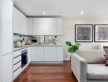 "Chancery Lane, Central London", 2 -sobni apartman. Moderno i stilski uređen: otvoreni dnevni boravak/blagovaona s stolom za blagovanje i TV-om (plosnatim TV ekranom). 1 bračna soba s 1 bračnim krevetom i kadom/tušem/WC-om. Otvorena kuhinja (4 ploče za kuhanje, pećnica, perilica za suđe, toster, kuhalo za vodu, zamrzivač, kombinirana mikrovalna pećnica). Grijanje. Na raspolaganju: perilica za rublje, sušilica, dječji krevetić do 2 godine (uz doplatu), sušilo za kosu. Internet (wireless LAN [WLAN], besplatan). Dodatna informacija: prikladno za obitelji. Kuća za nepušače. TV samo EN. Protupožarni alarm, vatrogasni aparat.- Značajke smještaja