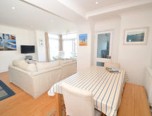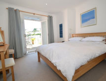 "Charborough", 5 -sobna kuća. Moderno i udobno uređena: 1 bračna soba s 1 bračnim krevetom i TV-om. Izlaz na balkon. 1 mala soba s 1 krevetom. Tuš/WC. Donji kat: dnevni boravak/blagovaona s stolom za blagovanje, TV-om i DVD-om. 1 bračna soba s 3 kreveta i TV-om. 1 bračna soba s 1 bračnim krevetom i TV-om. Kuhinja (4 ploče za kuhanje, pećnica, perilica za suđe, mikrovalna pećnica, zamrzivač). Tuš/WC. Grijanje. Veliki balkon. Balkonski namještaj. Lijep pogled na more. Na raspolaganju: Internet (wireless LAN [WLAN], besplatan). Dodatna informacija: kuća za nepušače. TV samo EN.- postrojenja