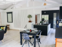 Obiteljska kuća "Chemin de Crabot", na 2 kata. Na rubu mjesta, 1.5 km od centra mjesta, mirno mjesto, 9 km od mora, 9 km od plaže. Za samostalno korištenje: parcela 5'000 m2 (ograđena), bazen (10 x 5 m, 120 cm dubok, sezonska dostupnost: 01.Jun. - 30.Sep.) s alarmnim uređajem. Parking na parceli. Trgovina 1.5 km, supermarket 11 km, restoran 1.5 km, pješčana plaža "Le Gurp" 9 km. Jahanje konja 3 km. Dodatna informacija: preporučljiv vlastiti prijevoz.Interior