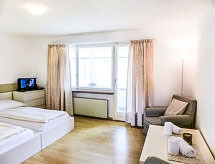 St. Moritz-Bad: Vrlo velika kuća s više apartmana "Chesa Ova Cotschna", na 9 kata, renovirana godine 2011. U samom mjestu 350 m od centra mjesta St.Moritz-Bad, mirno, sunčano mjesto, 300 m od jezera, 900 m od skijališta. U kući: dizalo, spremište za bicikle, spremište za skije, centralno grijanje. Trgovina 350 m, supermarket 800 m, restoran 50 m, bar 350 m, pekara 600 m, cafe, najam bicikli 350 m, autobusna postaja "St. Moritz Bad, Sonne" 50 m, željeznička postaja 2 km, natkriveni bazen 400 m, termalno kupalište "Heilbadzentrum St. Moritz" 600 m, jezero St. Moritzer See 300 m. Golf teren (18 rupa) 7.3 km, škola jedrenja na dasci 5.3 km, tenis 1 km, tenis hala 1 km, minigolf 400 m, jahanje konja 2.8 km, pješačke staze od kuće, biciklistička staza 200 m, kabinska žičara, skilift, skijaške staze 900 m, najam skijaške opreme 350 m, postaja ski busa 50 m, škola skijanja 2 km, škola skijanja za djecu 2 km, staza za sanjkanje 5.7 km, staza za skijaško trčanje 100 m, klizalište 450 m, dječje igralište 500 m. U blizini: Segantini Museum 2.2 km, Engadiner Museum 1.2 km, Mili Weber-Haus 2.9 km, Olympia Bob Run mit Museum 2.6 km, Nietzsche Museum in Sils-Maria 9.5 km. Poznata skijališta u blizini: Corviglia Piz Nair 900 m, Corvatsch - Furtschellas 6.5 km, Diavolezza - Lagalb 20 km. Poznata jezera u blizini: St.Moritzer See 300 m, Silvaplaner See 5.2 km, Silser See 9.5 km. Pješačke staze: Stazerwald & Stazersee, Corviglia Piz Nair, Muottas Muragl. Dodatna informacija: ključeve ćete preuzeti u turističkoj agenciji Interhome u mjestu St. Moritz Bad. U istoj kući iznajmljuju se dodatni apartmani.Interior
