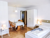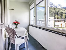 "Chesa Ova Cotschna 304", 1 -sobni apartman 32 m2 na 3. katu, prema zapadu. Moderno i udobno uređen: dnevno-spavaća soba s 1 bračnim krevetom (2 x 90 cm, dužina 200 cm), stolom za blagovanje i TV-om (plosnatim TV ekranom). Izlaz na lođu. Mala kuhinja (pećnica, 4 staklokeramičke ploče za kuhanje, kuhalo za vodu, el. aparat za kavu). Kada/WC. Balkonski namještaj. Pogled na planine i mjesto. Na raspolaganju: sušilo za kosu. Internet (wireless LAN [WLAN], besplatan). Dodatna informacija: apartman za nepušače, bez parkinga. Najviše 1 kućni ljubimac / pas dozvoljen.- postrojenja