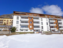 "Chesa Sur Puoz 7", 3 -sobni apartman 95 m2 na 1. katu. Prostrano i svijetlo, komforno i moderno uređen: dnevni boravak/blagovaona s panoramskim prozorom s TV-om (plosnatim TV ekranom). Izlaz na balkon. 1 bračna soba s 1 franc. krevetom (1 x 160 cm, dužina 200 cm). 1 soba s 2 kreveta (95 cm, dužina 200 cm). Otvorena kuhinja (pećnica, perilica za suđe, 4 staklokeramičke ploče za kuhanje, zamrzivač, el. aparat za kavu, Doze za mašinu za kavu (Nespresso) uz doplatu). Kada/bidet/WC, tuš/WC. Grijanje. Drveni pod, prirodni kameni pod. Garnitura za sjedenje (2). Prekrasan panoramski pogled na planine i mjesto. Na raspolaganju: glačalo, sušilo za kosu. Internet (wireless LAN [WLAN], besplatan). Garaža br. 14 na parceli (1 automobil), visina 235 cm, širina 310 cm. Dodatna informacija: apartman za nepušače, kuća za nepušače. Najviše 1 kućni ljubimac / pas dozvoljen.- Značajke smještaja