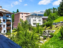 "Chesa Sur Val 22", 3 -sobni apartman 70 m2 na 2. katu. Komforno i udobno uređen: dnevni boravak/blagovaona s stolom za blagovanje i TV-om (plosnatim TV ekranom). Izlaz na balkon. 1 soba s 2 kreveta (90 cm, dužina 200 cm). 1 soba s 1 bračnim krevetom (160 cm, dužina 200 cm). Kuhinja (pećnica, perilica za suđe, 4 staklokeramičke ploče za kuhanje, toster, kuhalo za vodu, mikrovalna pećnica, el. aparat za kavu, Doze za mašinu za kavu (Nespresso) uz doplatu, raclette roštilj, set za fondue (sir)) s otvorom prema blagovaoni. Kada/WC, odv. WC. Grijanje. Parketni pod. Balkon, prema jugoistoku. Balkonski namještaj. Na raspolaganju: sušilo za kosu. Internet (wireless LAN [WLAN], besplatan). Garaža br. 23, visina 210 cm, širina 240 cm. Dodatna informacija: apartman za nepušače.- postrojenja