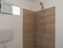 4 -sobna vila 110 m2, u prizemlju. Moderno i udobno uređena: dnevni boravak/blagovaona s TV-om sa sat. prijemnikom i klima uređajem. Izlaz na mjesto za sjedenje u vrtu. 2 bračne sobe, svaka soba s TV-om sa sat. prijemnikom i klima uređajem. 1 soba s 2 kreveta, TV-om sa sat. prijemnikom i klima uređajem. Velika kuhinjska niša (pećnica, perilica za suđe, 4 Indukcione ploče, toster, kuhalo za vodu, mikrovalna pećnica, zamrzivač, el. aparat za kavu). Tuš/WC, tuš/bidet/WC. Klima uređaj (uz doplatu). Vrtna terasa 80 m2 (natkrita). Garnitura za sjedenje, ležaljke (3). Pogled na more i mjesto. Na raspolaganju: perilica za rublje, glačalo, visoka dječja stolica, dječji krevetić (uz doplatu). Internet (wireless LAN [WLAN], besplatan).- postrojenja