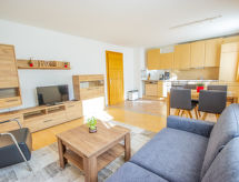"Christine", 2 -sobni apartman 55 m2, u prizemlju. Vrlo udobno uređen: predsoblje. 1 bračna soba. Velika kuhinja/dn. boravak (pećnica, perilica za suđe, 4 Indukcione ploče, zamrzivač, el. aparat za kavu) s stolom za blagovanje, 1 kaučem za 2 osobe i TV-om (plosnatim TV ekranom). Tuš/WC. Dodatna informacija: apartman za nepušače.- postrojenja