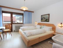 3 -sobni apartman 70 m2 na 1. katu. Komforno i udobno uređen: 2 bračne sobe, svaka soba s umivaonikom. Izlaz na balkon. Velika kuhinja/dn. boravak (pećnica, perilica za suđe, 4 staklokeramičke ploče za kuhanje, mikrovalna pećnica, zamrzivač) s 1 kaučem za 1 osobu, kutom za blagovanje i TV-om sa sat. prijemnikom (plosnatim TV ekranom). Izlaz na balkon. Tuš/WC, odv. WC. Veliki balkon, prema istoku, veliki balkon, prema jugu i prema zapadu. Balkonski namještaj. Prekrasan pogled na planine i krajolik. Na raspolaganju: dječji krevetić do 2 godine. Internet (wireless LAN [WLAN]). Dodatna informacija: apartman za nepušače. Protupožarni alarm.- postrojenja