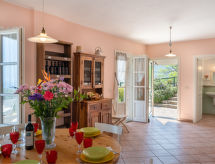 Lijepa, ugodna obiteljska kuća "Ciappai", okružena drvećem i vinogradima. 300 m od centra mjesta Pietrabruna, 10 km od centra mjesta San Lorenzo al Mare, 16 km od centra mjesta Imperia, izolirano, povišeno mjesto na padini, 9.5 km od mora, u zelenom. Za samostalno korištenje: njegovani terasasti vrt (ograđen) - bilje i cvijeće, bazen (6 x 3 m, 110 cm dubok, sezonska dostupnost: 01.Apr. - 01.Nov.). 300 m dugački strmi, uski prilaz autom do kuće. Parking (za 3 automobila) na parceli. Trgovina 300 m, supermarket 10 km, restoran, autobusna postaja 300 m, pješčana plaža "San Lorenzo al Mare" 10 km.Interior