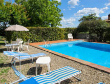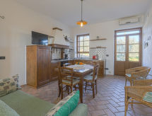 Ladanjska kuća "Cignanbianco", okružena poljima i vinogradima. 3 kuće u residenceu. 7 apartmana u residenceu. 5 km od centra mjesta Castellina in Chianti, 6 km od centra mjesta Castellina Scalo, 27 km od centra mjesta Siena, izolirano, sunčano mjesto. Za zajedničko korištenje: parcela 30 ha - bilje i drveće, prirodni vrt, bazen (12 x 6 m, sezonska dostupnost: 02.May. - 03.Oct.). Roštilj. Bazen održava vlasnik/vrtlar. U kući: perilica za rublje (za zajedničko korištenje). 1 km dugački prilaz autom (bijela cesta). Parking na parceli. Trgovina 5 km, trgovina živežnim namirnicama 5 km, supermarket 5 km, restoran 1.7 km, najam bicikli 5 km, autobusna postaja "Castellina Scalo" 6 km, željeznička postaja "Castellina Scalo" 6 km, pješčana plaža "Cecina Mare" 83 km, natkriveni bazen 15 km. U blizini: Moneriggioni 10 km, San Gimignano 29 km, San Galgano 50 km, Volterra 52 km, Montalcino 65 km. Dodatna informacija: oprema za bebe (uklj.). Grupe mladih samo na upit. Prodaja domaćih poljoprivrednih proizvoda. Vlasnik živi na istoj parceli.Interior