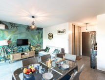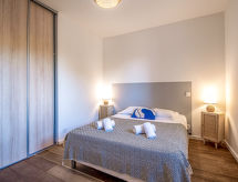 3 -sobni apartman 58 m2 na 1. katu. Objekt pogodan za 4 odraslih + 2 djece. Komforno i ukusno uređen: dnevni boravak/blagovaona s 1 kaučem za 2 osobe (140 cm, dužina 190 cm), TV-om (plosnatim TV ekranom). Izlaz na balkon. 1 soba s 1 franc. krevetom (140 cm, dužina 190 cm), TV-om (plosnatim TV ekranom). 1 soba s 1 franc. krevetom (140 cm, dužina 190 cm). Otvorena kuhinja (4 ploče za kuhanje, pećnica, perilica za suđe, toster, kuhalo za vodu, mikrovalna pećnica, zamrzivač, el. aparat za kavu). Kada/WC. Klima uređaj. Balkon 12 m2. Balkonski namještaj. Na raspolaganju: perilica za rublje. Internet (wireless LAN [WLAN], besplatan). Dodatna informacija: apartman prema dvorištu. Apartman za nepušače. Protupožarni alarm.- Značajke smještaja