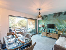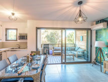 Moderni residence "Résidence Cita di Sali". U četvrti Vignola, na rubu mjesta, centralno mjesto, 500 m od mora, 8 km od plaže. Za zajedničko korištenje: bazen (16 x 5 m, 140 cm dubok, sezonska dostupnost: 15.May. - 30.Sep.). Bazen održava vlasnik/vrtlar. Prilaz autom do 20 m od kuće. Trgovina, trgovina živežnim namirnicama 100 m, supermarket 2 km, restoran 100 m, pješčana plaža "Santa Giulia" 8 km. Sportska lučica 200 m, golf teren (18 rupa) 6 km, jahanje konja 3 km. U blizini: Figari 22 km, Bonifacio 25 km, Solenzara 40 km, Iles Lavezzi. Dodatna informacija: preporučljiv vlastiti prijevoz. Residence s električnom kapijom.Interior