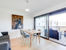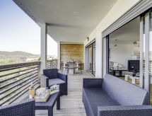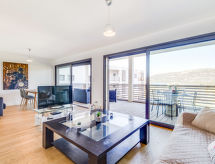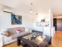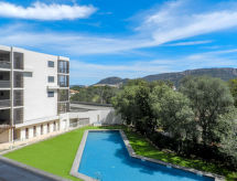 2 -sobni apartman 57 m2 na 3. katu. Komforno i udobno uređen: dnevni boravak/blagovaona s 1 kaučem za 2 osobe (140 cm, dužina 190 cm), TV-om (plosnatim TV ekranom). Izlaz na balkon. 1 soba s 1 franc. krevetom (160 cm, dužina 200 cm), TV-om (plosnatim TV ekranom). Otvorena kuhinja (4 ploče za kuhanje, pećnica, perilica za suđe, toster, kuhalo za vodu, mikrovalna pećnica, el. aparat za kavu). Tuš/WC, odv. WC. Klima uređaj. Balkon 12 m2. Balkonski namještaj. Pogled na bazen. Na raspolaganju: perilica za rublje. Internet (wireless LAN [WLAN], besplatan). Dodatna informacija: apartman za nepušače. Protupožarni alarm.- Značajke smještaja