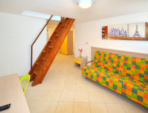 Turistički kompleks "Club dei Pini". 33 kuće u turističkom naselju. U četvrti Lido dei Pini 150 m od centra mjesta Bibione - Lido dei Pini, 13 km od centra mjesta Lignano, 100 km od centra mjesta Venezia, 500 m od mora. Za zajedničko korištenje: parcela, njegovani vrt travnjak i drveće, bazen (15 x 8 m, sezonska dostupnost: 15.May. - 15.Sep.). Bazen za djecu. U kući: najam bicikli. Trgovina, restoran 150 m, željeznička postaja "Latisana (Venezia-Trieste)" 21 km, pješčana plaža 500 m. Golf teren (18 rupa) 8 km. Vlasnik ne prihvaća grupe.Interior