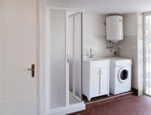 4 -sobna kuća u nizu 60 m2 na 2 etaže. Svrsishodno i moderno uređena: dnevno-spavaća soba s 1 kaučem za 2 osobe, stolom za blagovanje i TV-om sa sat. prijemnikom. Izlaz na terasu. 1 bračna soba. 1 soba s 2 kreveta. Mala kuhinja (Plinski štednjak, 4 plamena za kuhanje, mikrovalna pećnica, zamrzivač, el. aparat za kavu). Tuš/bidet/WC. Donji kat: (strme stepenice) 1 soba s 1 kaučem za 2 osobe (140 cm), TV-om i klima uređajem. Tuš/bidet/WC. El. grijanje, klima uređaj. Grijanje samo u pojedinim prostorijama. Terasa (djelomično natkrita). Garnitura za sjedenje, vrtni roštilj. Na raspolaganju: perilica za rublje, sef, visoka dječja stolica, dječji krevetić. Garaža na parceli (1 automobil) uz kuću, visina 230 cm.- postrojenja
