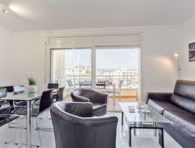 3 -sobni apartman 70 m2 na 2. katu. Prostrano i svijetlo, moderno i stilski uređen: dnevni boravak/blagovaona s stolom za blagovanje i TV-om (plosnatim TV ekranom), klima uređajem. Izlaz na terasu. 1 soba s 1 franc. krevetom (160 cm). 1 soba s 1 franc. krevetom (160 cm). Kuhinja (pećnica, perilica za suđe, 4 Indukcione ploče, mikrovalna pećnica, zamrzivač, el. aparat za kavu). Tuš/WC. Bez grijanja. Mala terasa 7 m2. Garnitura za sjedenje. Panoramski pogled na kanal. Na raspolaganju: perilica za rublje. Dodatna informacija: 1 mali kućni ljubimac / pas dozvoljen. TV samo FR. HUTG044013- postrojenja