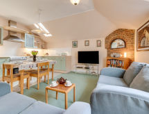 3 -sobni apartman na 1. katu. Komforno i ukusno uređen: otvoreni dnevni boravak/blagovaona s stolom za blagovanje i TV-om (plosnatim TV ekranom), CD-om i DVD-om. 1 bračna soba s 1 franc. krevetom. 1 soba s 1 krevetom. Otvorena kuhinja (4 ploče za kuhanje, pećnica, perilica za suđe, mikrovalna pećnica, zamrzivač). Kada/tuš/WC. Grijanje na plin. Na raspolaganju: perilica za rublje. Internet (wireless LAN [WLAN], besplatan). Dodatna informacija: nije prikladno za djecu mlađu od 10 godina. Kuća za nepušače.- Značajke smještaja