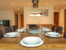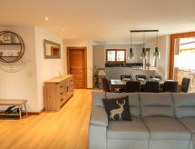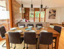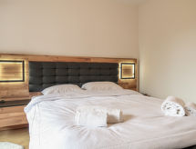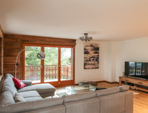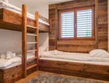 "Coeur des Alpes 301", 4 -sobni apartman 96 m2 na 3. katu, prema jugozapadu. Svijetlo, komforno i lijepo uređen: predsoblje. Dnevni boravak/blagovaona s kabelskom TV. Izlaz na balkon, prema jugu i prema zapadu. 1 soba, bez ormara s 1 franc. krevetom (160 cm, dužina 210 cm), tušem/WC-om. Izlaz na balkon, prema zapadu. 1 soba s 2 kreveta (90 cm, dužina 200 cm). Izlaz na balkon, prema istoku. 1 soba s 1 krevetom (90 cm, dužina 190 cm), 1 x 2 kreveta na kat (90 cm, dužina 190 cm). Otvorena kuhinja (pećnica, perilica za suđe, 4 Indukcione ploče, el. aparat za kavu, Doze za mašinu za kavu (nespresso) uz doplatu, raclette roštilj, set za fondue (sir)). Kada/WC. Parketni pod. Veliki balkon 35 m2, prema jugu i prema zapadu balkon 12 m2, prema istoku. Balkonski namještaj. Vrlo lijep pogled na planine. Na raspolaganju: perilica za rublje, sušilica. Internet (wireless LAN [WLAN], besplatan). Garaža, visina 210 cm. Dodatna informacija: apartman za nepušače. 1 mali kućni ljubimac / pas dozvoljen.- Značajke smještaja