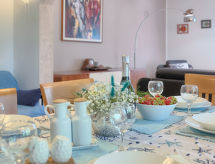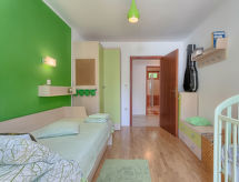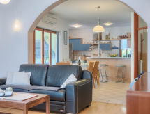 4 -sobna polovica dvojne kuće 100 m2. Dnevni boravak/blagovaona s TV-om sa sat. prijemnikom (plosnatim TV ekranom), klima uređajem. Izlaz na terasu. 1 soba s 1 franc. krevetom (160 cm, dužina 200 cm), kadom/WC-om. Izlaz na terasu. 1 soba s 2 kreveta (90 cm, dužina 200 cm). Izlaz na terasu. 1 soba s 1 krevetom (90 cm, dužina 200 cm), 1 krevetom na izvlačenje (dužina 200 cm). Otvorena kuhinja (4 ploče za kuhanje, pećnica, perilica za suđe, mikrovalna pećnica, zamrzivač, el. aparat za kavu). Tuš/WC. Terasa 25 m2 (natkrita), terasa 15 m2. Garnitura za sjedenje, ležaljke. Pogled na vrt. Na raspolaganju: dječji krevetić, sušilo za kosu. Internet (wireless LAN [WLAN], besplatan).- Aktivnosti u blizini