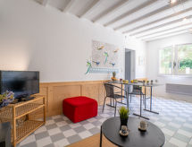 2 -sobni apartman 40 m2, u prizemlju. Komforno i lijepo uređen: dnevni boravak/blagovaona s TV-om (plosnatim TV ekranom). Izlaz na mjesto za sjedenje u vrtu. 1 soba s 1 franc. krevetom (140 cm, dužina 190 cm). Mala kuhinjska niša (2 staklokeramičke ploče za kuhanje, mikrovalna pećnica, el. aparat za kavu). Tuš, odv. WC. El. grijanje. Mala terasa, vrtna terasa 40 m2. Na raspolaganju: perilica za rublje. Internet (wireless LAN [WLAN], uz doplatu). Dodatna informacija: 1 kućni ljubimac / pas dozvoljen. Protupožarni alarm. 64122172080XN- postrojenja