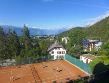 Veliki residence "Cransalpin". Iznad mjesta Montana, na rubu mjesta, 1.5 km od centra mjesta Montana, sunčano, povišeno mjesto. Za zajedničko korištenje: vrt - travnjak, unutarnji bazen grijani (13 x 8 m, 50- 200 cm dubok, sezonska dostupnost: 01.Dec. - 31.Oct. bazen je otvoren u vremenu: 08:00-20:00). Tenis. U kući: sauna, dizalo, spremište za skije, centralno grijanje, perilica za rublje, sušilica (za zajedničko korištenje, uz doplatu). Parking (ograničen broj mjesta). Autobusna postaja "Vermala Soleil" 100 m. Skijaške žičare 700 m. Dodatna informacija: U slučaju povoljnih snježnih uvjeta pristup do kuće na skijama. Mogućnost rezerviranja dodatnih smještajnih jedinica.Interior