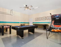 9 -sobna vila 263 m2. Luksuzno i ukusno uređena: dnevni boravak/blagovaona. Dnevni boravak s kabelskom TV (plosnatim TV ekranom). Izlaz na bazen. Soba za biljar. 1 soba s 1 bračnim krevetom (200 cm), kadom/tušem/WC-om. Otvorena kuhinja (pećnica, perilica za suđe, mikrovalna pećnica, zamrzivač). Odv. WC. Klima uređaj. Gornji kat: 1 soba s 1 bračnim krevetom (200 cm), kadom/WC-om i kabelskom TV (plosnatim TV ekranom). 1 soba s 1 bračnim krevetom (160 cm), kadom/WC-om i kabelskom TV (plosnatim TV ekranom). 1 soba s 2 bračna kreveta (140 cm), kadom/WC-om i kabelskom TV (plosnatim TV ekranom). 2 sobe, svaka soba s 2 kreveta. Kada/WC. Klima uređaj. Vrtna terasa. Garnitura za sjedenje. Pogled na jezero. Na raspolaganju: perilica za rublje, sušilica. Internet (wireless LAN [WLAN], besplatan). Dodatna informacija: kuća za nepušače. Protupožarni alarm.- Značajke smještaja