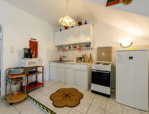 4 -sobna kuća 85 m2. Svrsishodno uređena: dnevni boravak/blagovaona s TV-om sa sat. prijemnikom. Izlaz na terasu. 1 soba s 1 franc. krevetom (160 cm, dužina 200 cm). Otvorena kuhinja (3 ploče za kuhanje, pećnica, mikrovalna pećnica). Odv. WC. Gornji kat: predsoblje. 1 soba s 1 franc. krevetom i 2 ležaja (80 cm, dužina 160 cm). 1 soba s 3 kreveta. Tuš, odv. WC. Terasa, vrtna terasa. Garnitura za sjedenje, vrtni roštilj (prijenosni). Parking (ograđen, 2 automobila). MA19006626- postrojenja