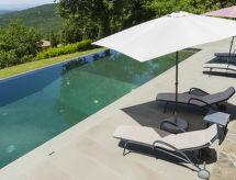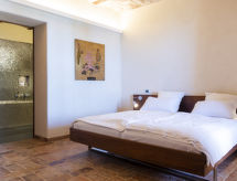 5 -sobna vila 400 m2 na 3 etaže. Luksuzno i stilski uređena: veliki dnevni boravak s otvorenim kaminom i TV-om (plosnatim TV ekranom). Blagovaona. Izlaz na lođu. Kuhinja (4 ploče za kuhanje, pećnica, perilica za suđe, mikrovalna pećnica, zamrzivač). Izlaz u vrt. Odv. WC. Klima uređaj, podno grijanje. Donji kat: 1 bračna soba s tušem/bidetom/WC-om. Izlaz u vrt. 1 bračna soba s kada/tuš/bidet/WC. Izlaz u vrt, na lođu. Gornji kat: 1 bračna soba s tušem/bidetom/WC-om. Izlaz na terasu. Vrlo lijep panoramski pogled na jezero i dolinu. Na raspolaganju: perilica za rublje. Internet (wireless LAN [WLAN]).- Značajke smještaja