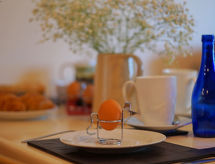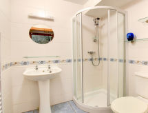 3 -sobna obiteljska kuća. Prostrano i svijetlo, komforno i ukusno uređena: otvoreni dnevni boravak s 1 kaučem za 2 osobe, TV-om, plosnatim TV ekranom, radiom, CD-om i DVD-om. 1 bračna soba s 1 bračnim krevetom. 1 soba s 2 kreveta. Otvorena kuhinja (4 ploče za kuhanje, pećnica, perilica za suđe, mikrovalna pećnica, zamrzivač) s stolom za blagovanje. Tuš/WC. Grijanje. Garnitura za sjedenje. Dodatna informacija: kuća za nepušače.- postrojenja